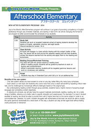 The Afterschool Kindergarten is designed for students who are not enrolled in our daytime kindergarten classes. Joy to the World's emphasis on English immersion and staff of native speakers makes this program unique and valuable for students.