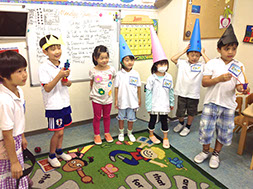 The K3 Class concludes the children’s preparatory years of learning and prepares them for the more formal educational endeavor of Elementary schools. A more advanced and structured approach to learning is implemented particularly in reading phrases, sentences and books that are age-appropriate; speaking in complete sentences enriched with English vocabulary and basic grammar structure; and writing sentences enriched with spelling awareness of most commonly used words. Upon graduation from this class, children are eligible to enter various Japanese elementary schools and international schools. Science, Social Studies, Arts, Music and Physical Education are integrated within the main curriculum.